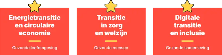 De regio Utrecht streeft naar een gezonde wereld, waarin mensen een gezond leven leiden op fysiek, mentaal en sociaal vlak. Daarom werken ze binnen de Regionale Economische Agenda samen aan drie maatschappelijke opgaven/transities: